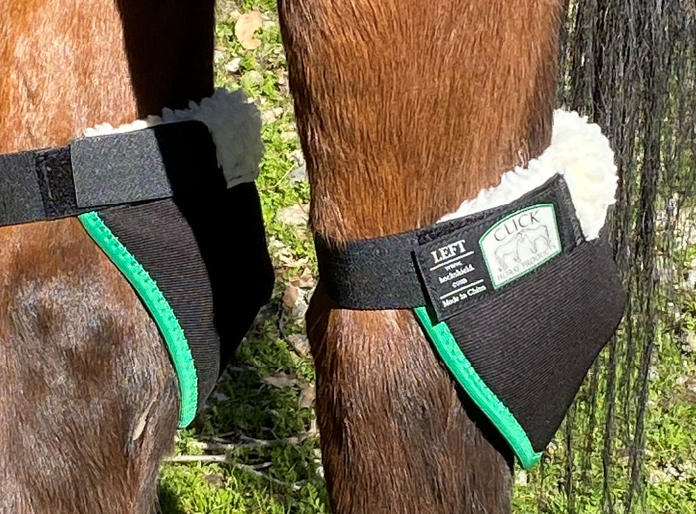 The low profile design offers full coverage in the area where horses develop sores. The soft, flexible pocket in the center back of the Hock Shield provides comfort in the delicate area where the tendons pass just under the skin. This is the perfect solution for the majority of horses with hock sores. Now available in two adjustable sizes.